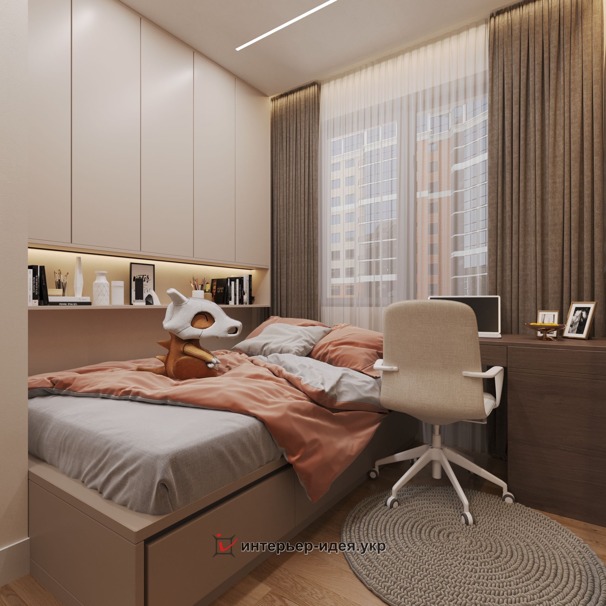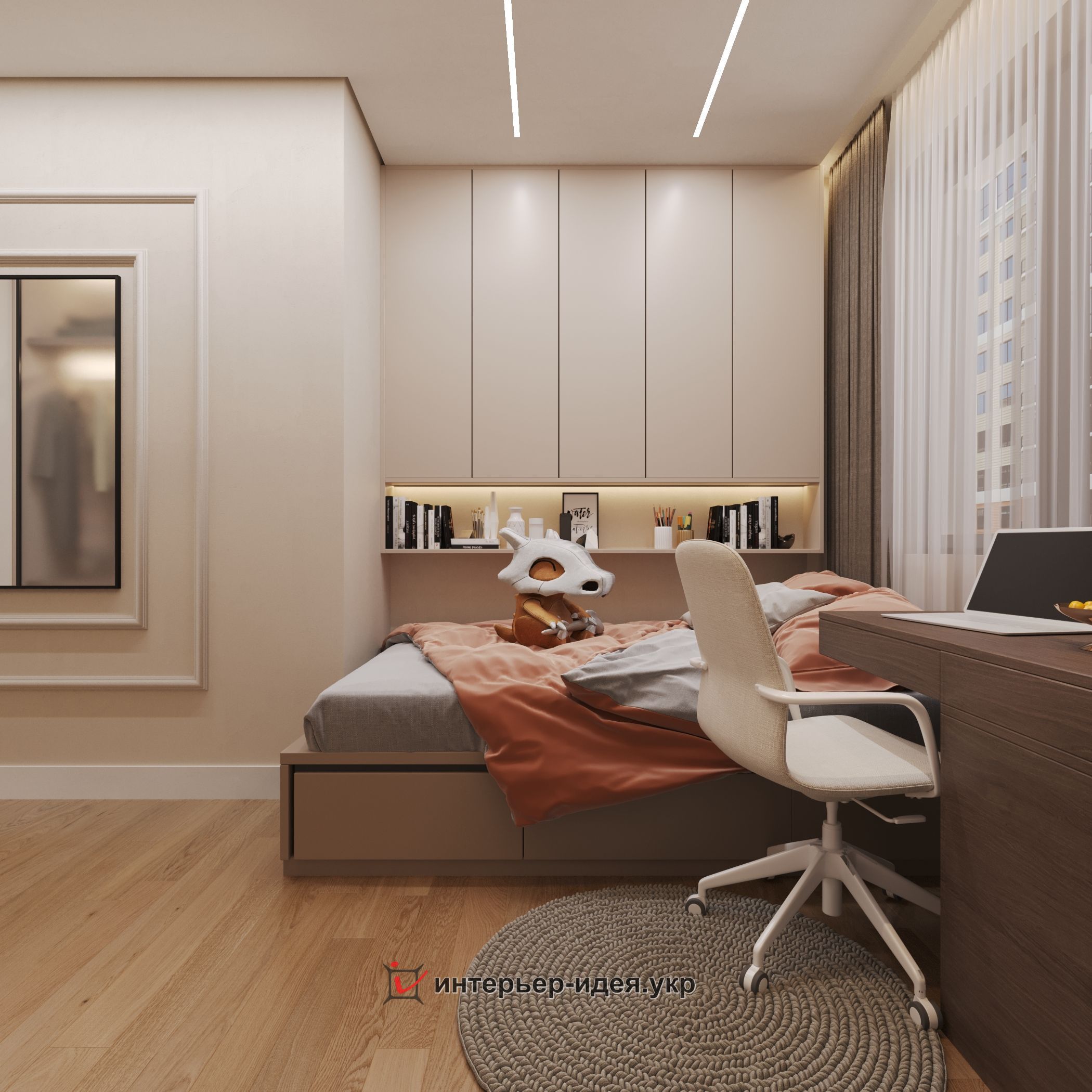Вместе с клиентом было принято решение, за счет данной комнаты расширить площадь кухни. Это позволило нам использовать подиум с открывающимися ящиками.